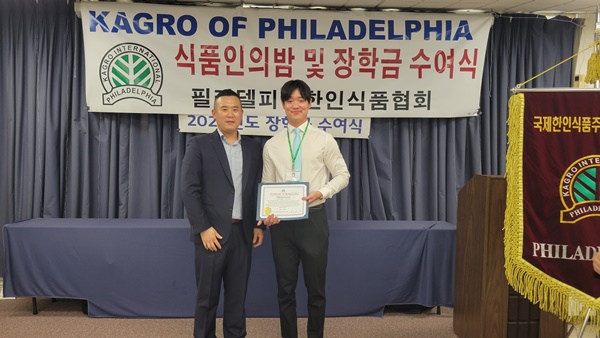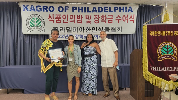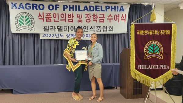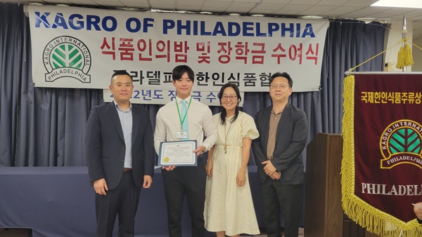 필라델피아 한인식품인협회는 서재필 봉사센터 에서 717 2022년도장학금 수여식을 갖고 센트럴 벅스 하이 스쿨의 김예준 학생과 애빙턴 하이스쿨의 자키안 자몬  한인과 미국 학생 10명에게  1 달러씩 1 달러의 장학금을 수여했다.