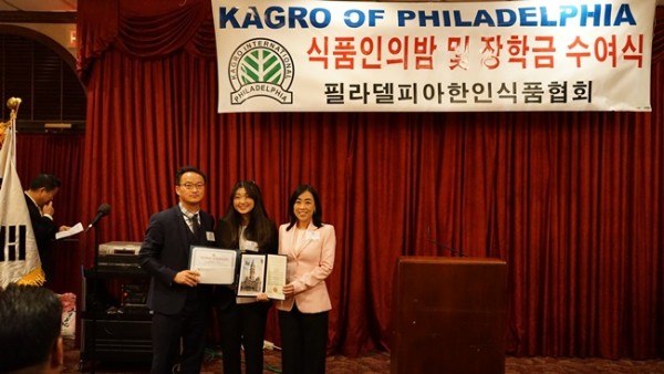 필라델피아 한인식품인협회는 2 9일 라이라이가든에서 '2020 장학금수여식'을갖고 홍예람양(어퍼더블린고교) 8명에게각각 1천 달러씩 8천 달러의 장학금을 전달했다.