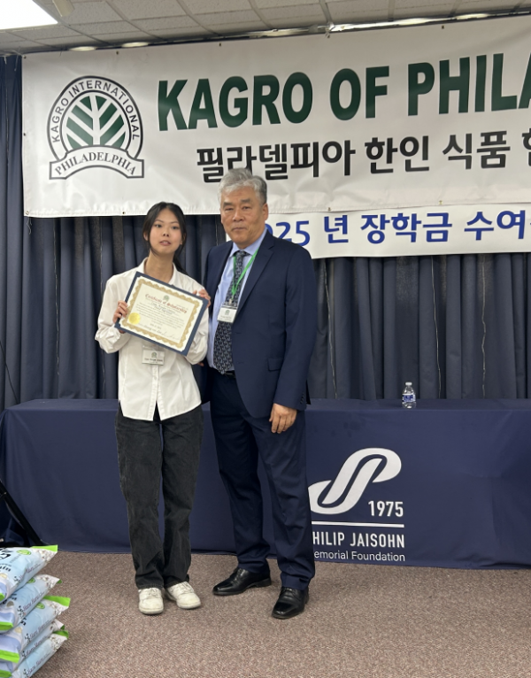 필라델피아 한인식품인협회는 427 2025년도 장학금 수여식을 갖고 노스펜 하이 스쿨 12학년 김시원 양등 10명의 학생들에게 1 달러씩 모두 1 달러의 장학금을 수여했다.